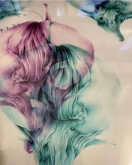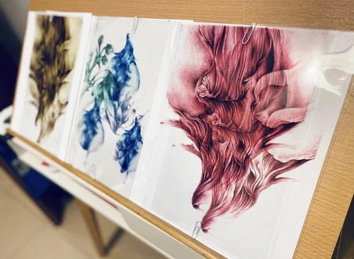 This body of work is inspired by local indigenous plants and other tropical species which are found on the island of Comoros; an island that the artist visited a few years ago. All the pieces are named after women who the artist met while visiting the island. The artist uses innovative elements and practices through contemporary botanical drawings, which creates a dialogue between the past, present and future. Her method involves traditional as well as digital processes. She uses a system where pencil drawings are transferred digitally onto several transparent layers and later merged as one artwork. This method enables her to communicate the physical and spiritual physiology of the chosen plants in an individual approach. The resulting images are imbued with sensual and feminine qualities which in turn are also a reflection of Ruth’s own identity, both as an artist as well as an individual. This production method makes it possible for every piece to be one of a kind.